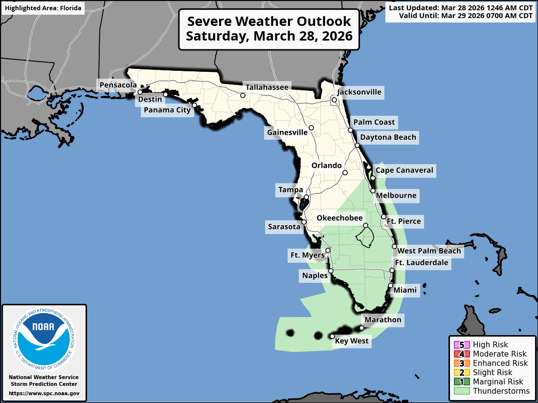 National Weather Service Storm Prediction Center Severe Weather Outlook for Florida March 28, 2026