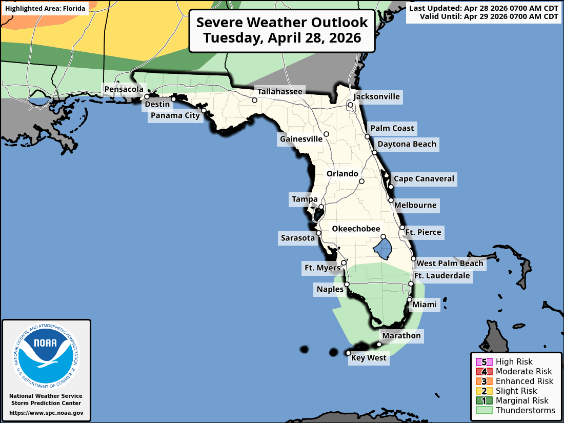National Weather Service Storm Prediction Center Severe Weather Outlook for Florida on Tuesday, April 28, 2026.