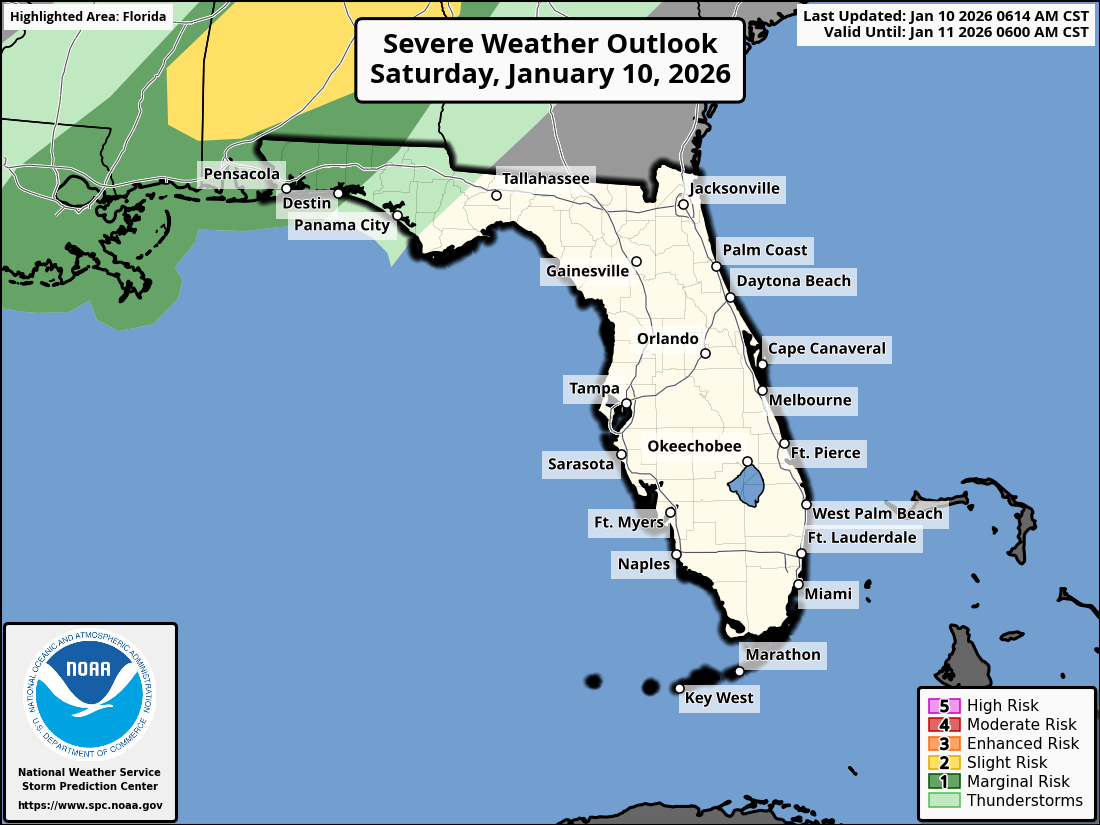 Severe Thunderstorm, Tornado Risk For Florida Panhandle, Big Bend
